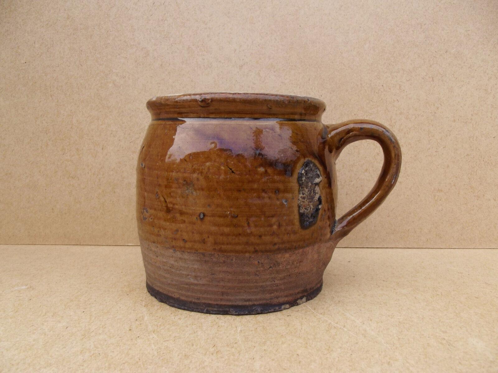 Ancien pot à graisse en grès vernissé de Puisaye st Amand art populaire